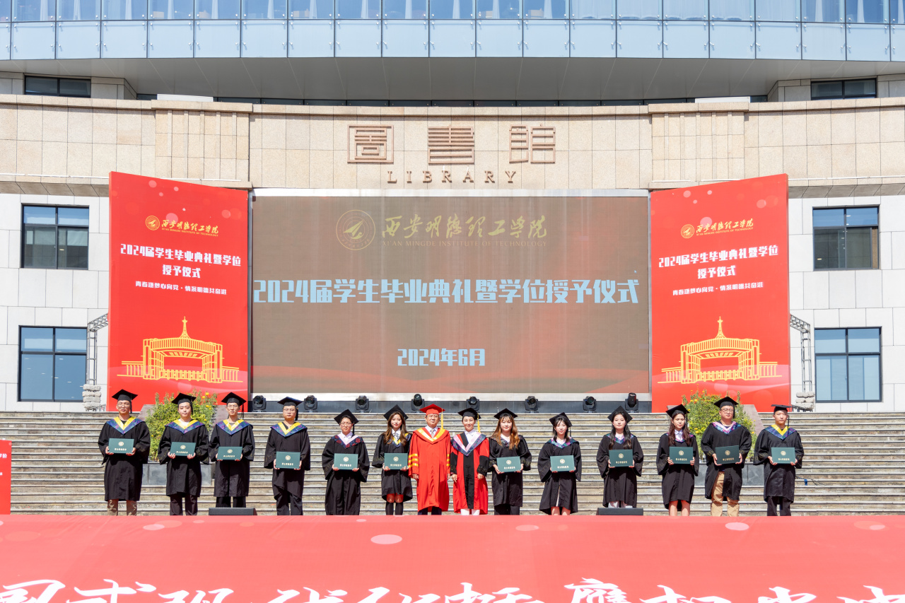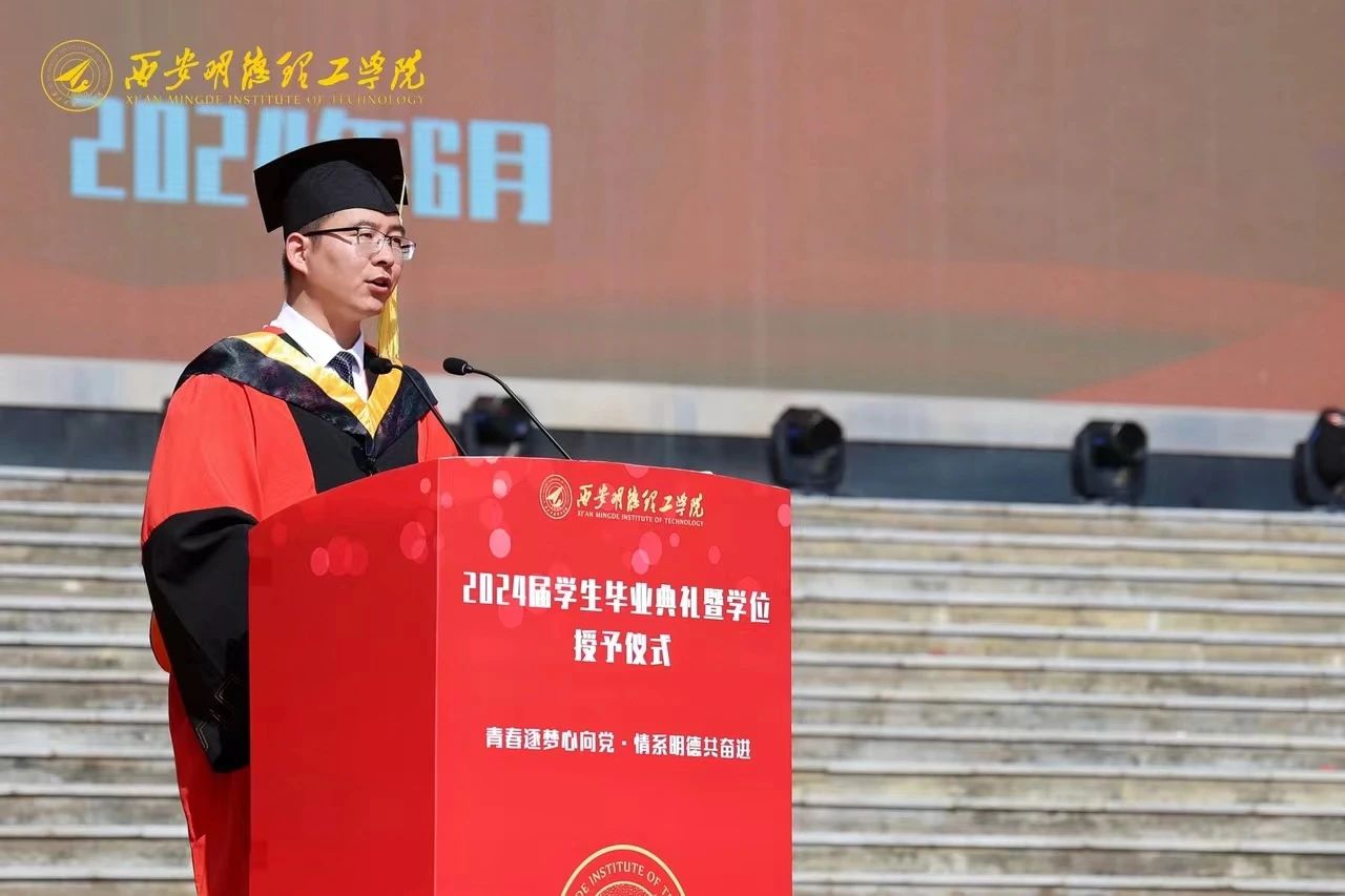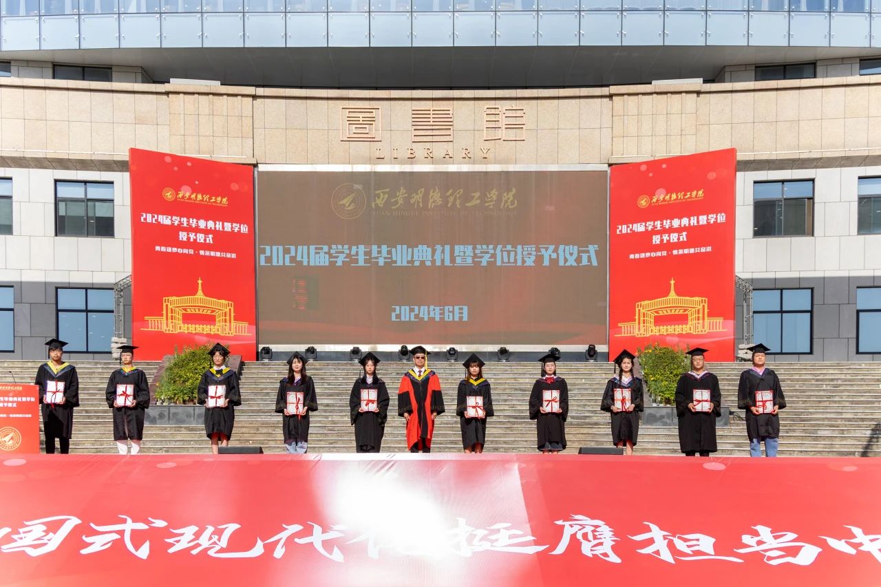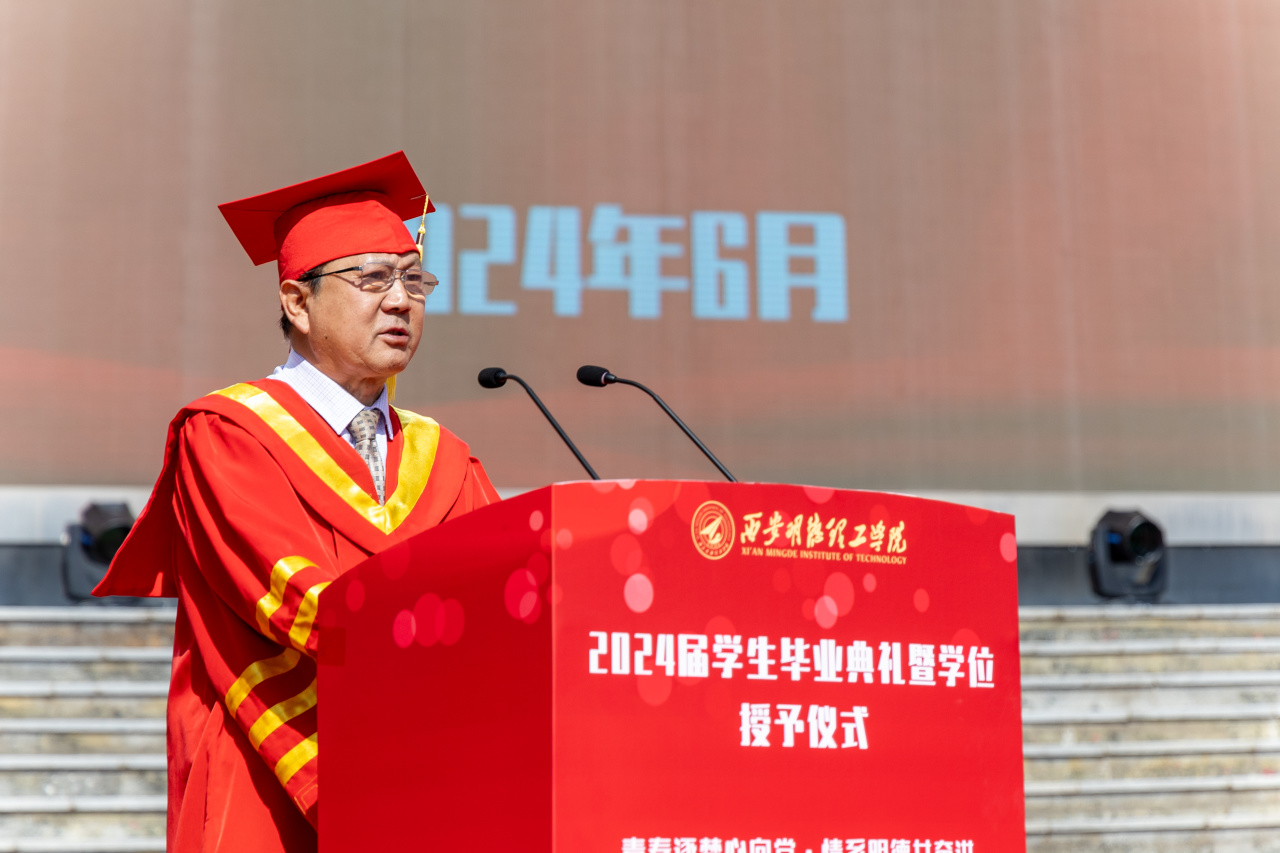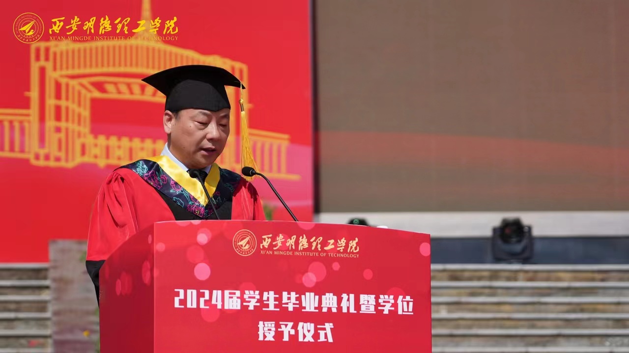 沣水悠悠映柳绿,终南隐隐送花香。6月25日,2024届学生毕业典礼暨学位授予仪式在学校中心广场隆重举行。学校董事长袁汉源,副董事长张琳,校长王志刚,学校党委书记阎东明,以及全体在家校领导,明德源教育集团领导,学校学士学位评定委员会成员、各二级学院领导班子成员、各职能部门、教辅单位负责人,校友代表、毕业生家长代表、毕业班辅导员、2024届毕业生参加典礼。典礼由学校党委副书记、副校长刘星主持。