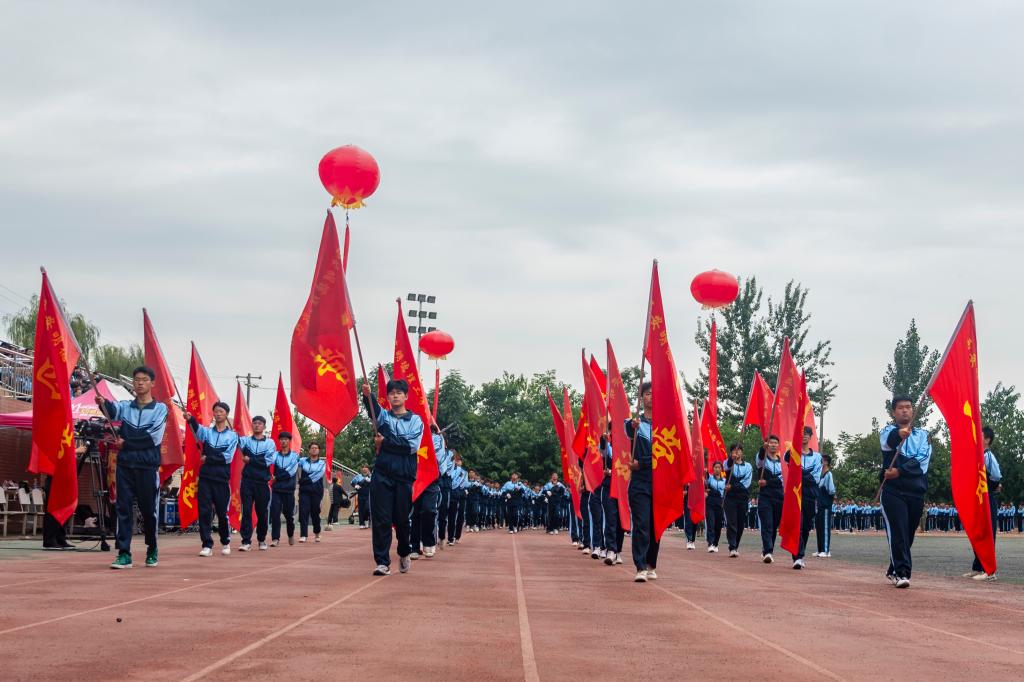 9月21日上午,学校2024级学生开学典礼暨军训总结表彰大会在学校运动场隆重举行。陕西金叶科教集团副总裁秦忠,董事局秘书闫凯,明德源教育集团助理总裁兼常务副总裁、学校副董事长张琳,学校校长王志刚,党委书记马川鑫,长安区人民武装部部长张引良,明德源教育集团财务总监田雪,学校副校长朱延波、陈鹏,财务总监马晓军,学校军训团团长张军闯出席大会,明德源教育集团、学校各学院、职能部门、教辅单位领导,全体军政干部、2024级全体学生、家长代表参加大会。会议由学校党委副书记、副校长、军训团政委刘星主持。