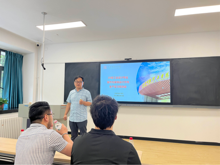 特邀请了陕西泽东正阳建筑设计有限公司、陕西筑梦天下建筑有限公司、西安木晚舟建筑工程有限公司、郭莘空间设计有限公司4家优秀校友企业参会。会议由艺术与设计学院教学副院长、工业设计专业负责人冯强老师主持,工业设计专业教师和2020级工业设计专业室内与家具设计方向35名学生参加了会议。