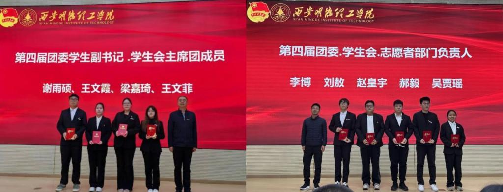 在热烈的掌声中,与会老师为学院第三届团委学生会干部受聘学生颁发聘书。这一份聘书不仅是对他们过去努力的认可,更是对他们未来责任的赋予。