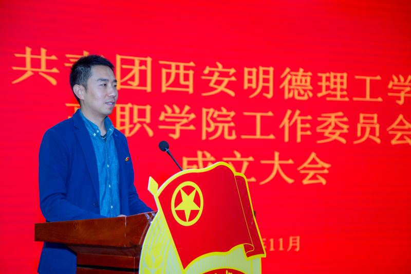 大会伊始,全体起立奏唱团歌。随后党委(学生)工作部副部长童杨梓老师宣读高职学院团工委成立批复。党委(学生)工作部乔建老师宣读高职学院团工委、学生会主要干部名单。最后,由高职学院副院长王君涛发表讲话。