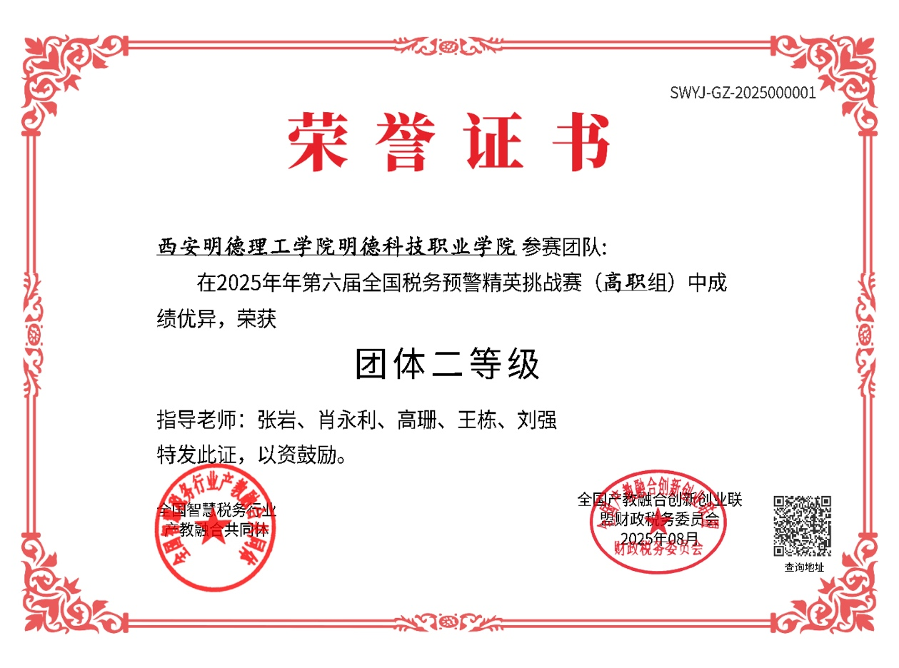 明德科技职业学院在第六届全国税务预警精英挑战赛中喜获佳绩