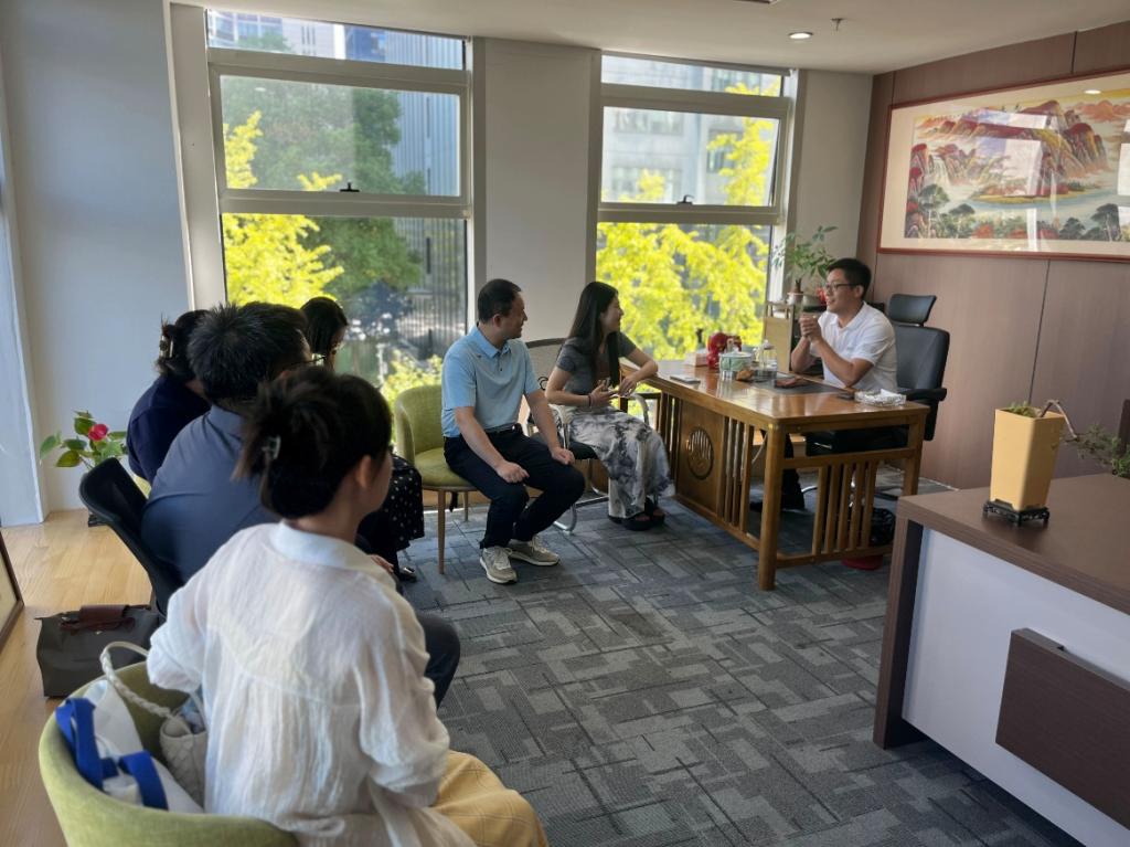 在杭州哦耶科技有限公司,调研团一行在企业总经理、学校2017届校友臧伟的陪同下,参观了企业办公环境,体验了产品的快速打印。座谈会上,企业董事长邓立涛对学院一行的来访表示欢迎,向大家介绍了杭州市高校毕业生入驻人才政策和待遇;臧伟从发展历程、运营模式、企业文化、产品特性及高校使用数量、人才需求等方面介绍了企业概况,深情回顾了在母校的学习经历,期待能为母校的发展贡献力量。何文举介绍了学校和经济与管理学院的办学历史、特色及人才培养成效,刘敏介绍了学院在产教融合、校企合作方面的探索实践,希望未来可以进一步加强同校友企业的交流合作。在邓立涛的陪同下,学院一行参观了浙江人才大厦办公环境,深入了解杭州市对大学毕业生就创业的支持政策。