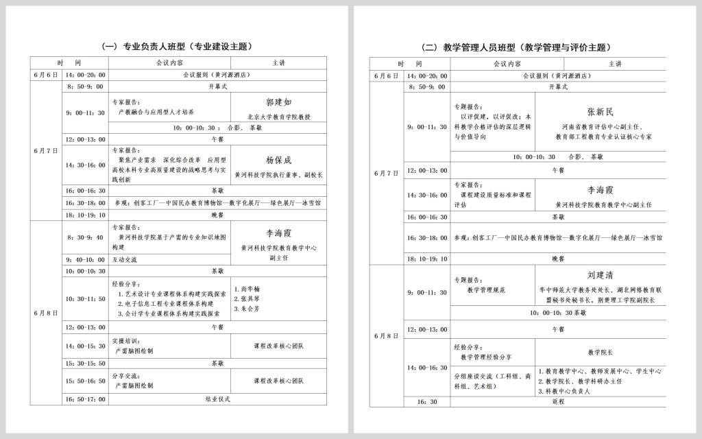 本次分为两个班型,分别针对专业负责人和教学管理人员: