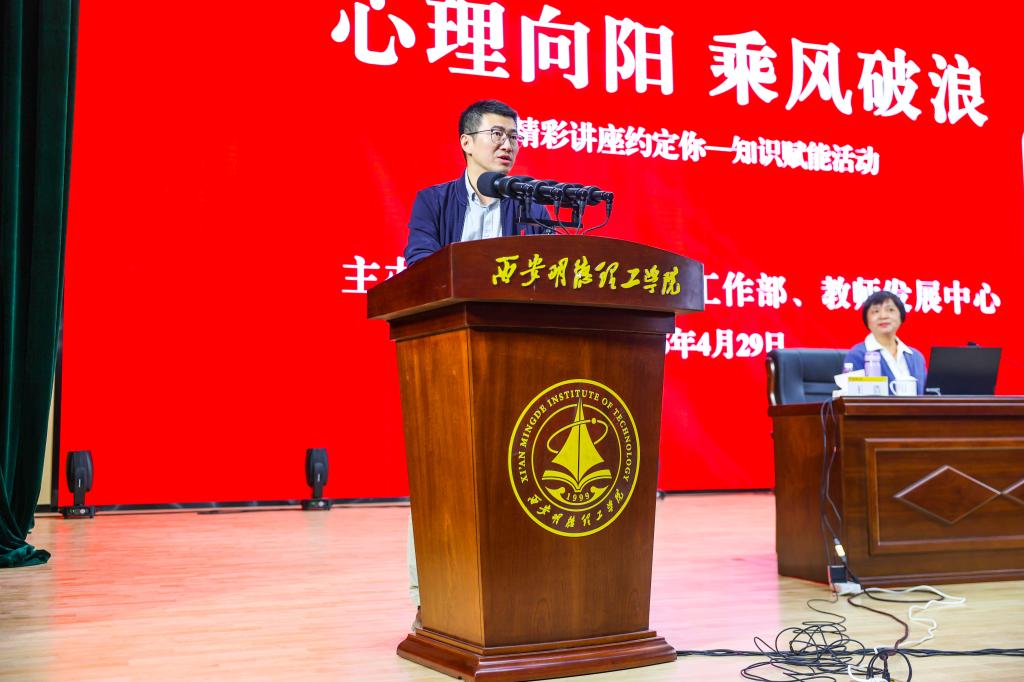4月29日晚,教师发展中心与党委学生工作部联合主办的“心理向阳 乘风破浪”心理健康专题讲座在四季廊桥报告厅圆满举行。本次讲座特邀西安财经大学教授、国家心理咨询师职业培训师王浩教授担任主讲人,旨在提升全校师生的心理素养与危机干预能力,助力构建全员育心的校园心理健康支持体系,吸引来自全校1000余名教师、辅导员及学生参加。