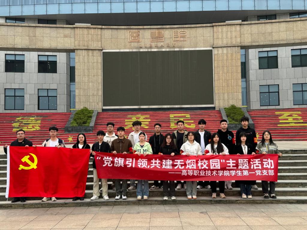 3月27日下午,高等职业技术学院学生第一党支部全体党员在图书馆门口齐聚,积极响应学校号召,开展“党旗引领,共建无烟校园”主题活动。