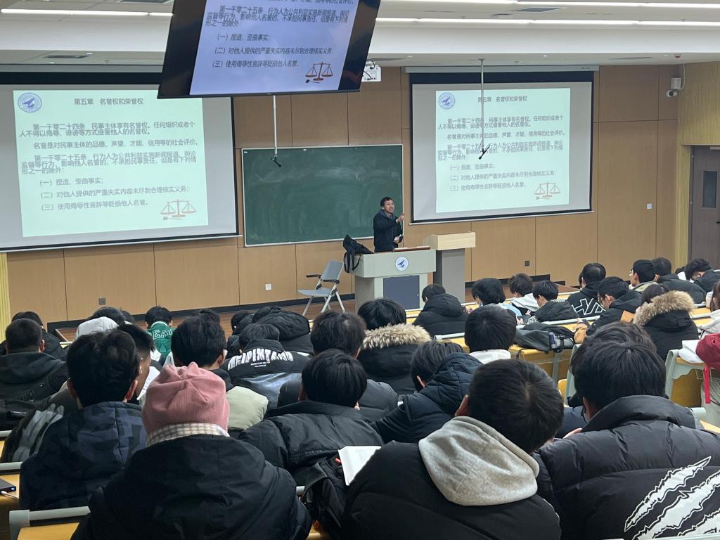 2023年12月19日,马克思主义学院王婉菲老师为大家重点解读了中华人民共和国首部民法典之人格权。以《民法典》中的亮点内容为主线,向同学们进行了细致讲解,很好地展示了法律的实用性和普遍性。在法律面前,每一个生命都应该得到尊重和保障,这是立法的本源,也是司法的核心。《民法典》所形成的对每一个自然人全方位的保护体系,切实体现了“以人民为中心”的立法理念,彰显了《民法典》作为权利法典的根本属性。同时告诫同学们要从自身做起,加强思想道德修养和自我保护意识,要善于运用法律武器维护自己的合法权益。