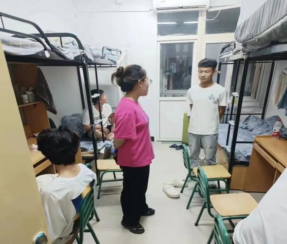 此次走访学生寝室,进行了寝室内务督查,提醒同学们要共同创建整洁文明的学习生活环境,不要在宿舍使用大功率电器,禁止私拉电线。疫情期间叮嘱同学们做好个人防护,积极配合学校防疫工作。进入寝室后,辅导员老师仔细检查了寝室设施是否完好,叮嘱同学们定好闹钟,按时参加线上课程,天气转凉多添衣物。