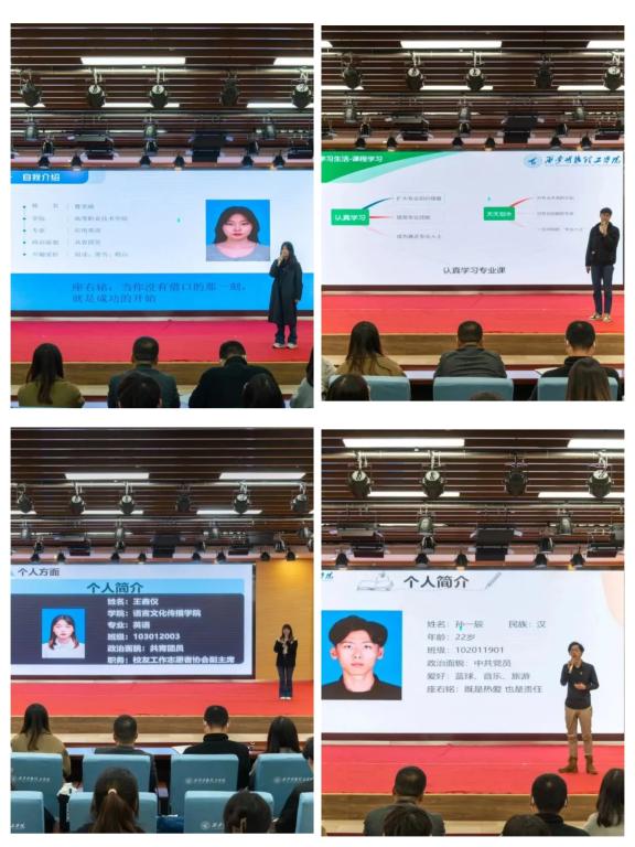 会上,来自高等职业技术学院的曹笑晴同学谈到作为一名专科生如何在大学期间 “追赶花期”的成长经历,每朵花可能花期不同,但终究都会绽放美丽;来自经济与管理学院的李纪赫同学从如何开始从预习、找重点、记笔记以及练习谈到自己学习数学的方法,讲到了如何应试到参加学科竞赛的心路历程;来自智能制造与控制技术学院的孙一辰同学从如何做好一名优秀的学生干部并努力实现自我价值提高自己,分享了他在开展学生工作中的经验和方法;来自语言文化传播的王鑫仪同学分享了单词记忆、语法学习的方法,并给学弟学妹们介绍了自己学习英语的软件和自主学习的方法。