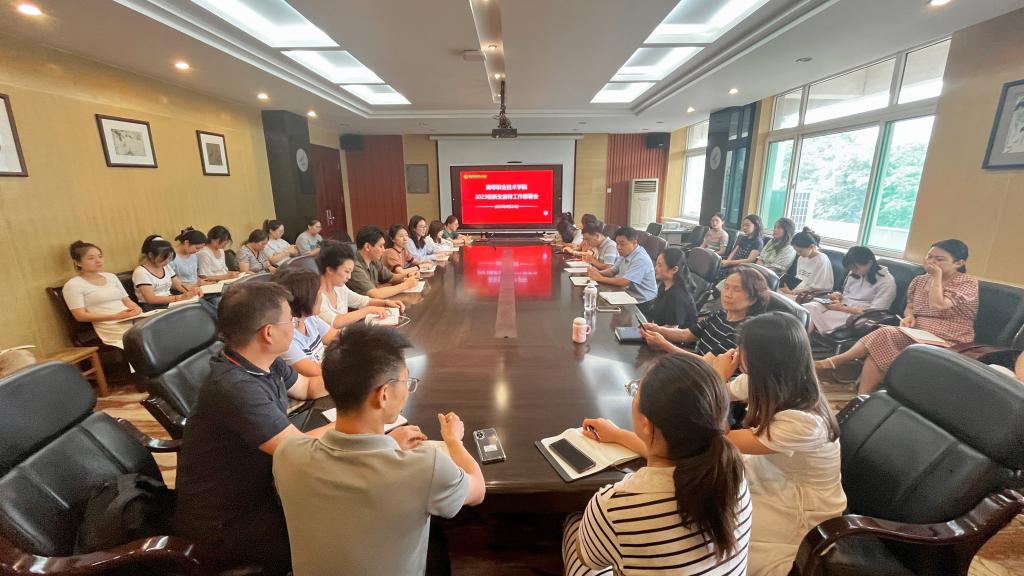 盛夏消隐,金秋遂至,又是一年迎新时,为做好新生接待工作,确保新生入学工作安全、有序、高效地进行,8月23日,高等职业技术学院于明理楼216会议室组织召开2023级新生接待工作部署会,高等职业技术学院全体班子成员、教学管理人员、任课教师以及辅导员老师参与本次会议。