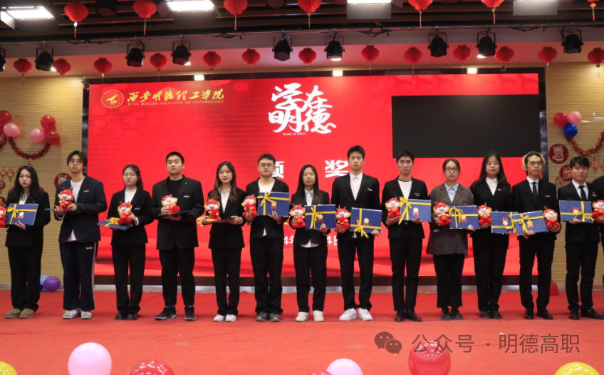 高等职业技术学院副院长于莉宣读了表彰决定,参会领导为获奖学生代表颁奖。