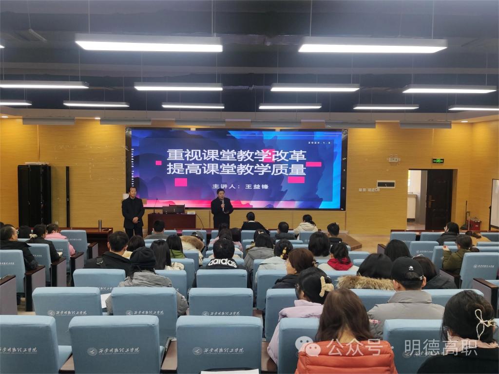 2024年1月3日,西安电子科技大学王益锋教授受邀在建德楼202报告厅为开元教师带来了开年的第一场讲座。本次讲座主题是重视课堂教学改革,提高课堂教学质量。高等职业技术学院专兼职教师、经济管理学院教师代表等共计100余位教师参加了此次讲座。讲座由高等职业技术学院院长舒忠主持。