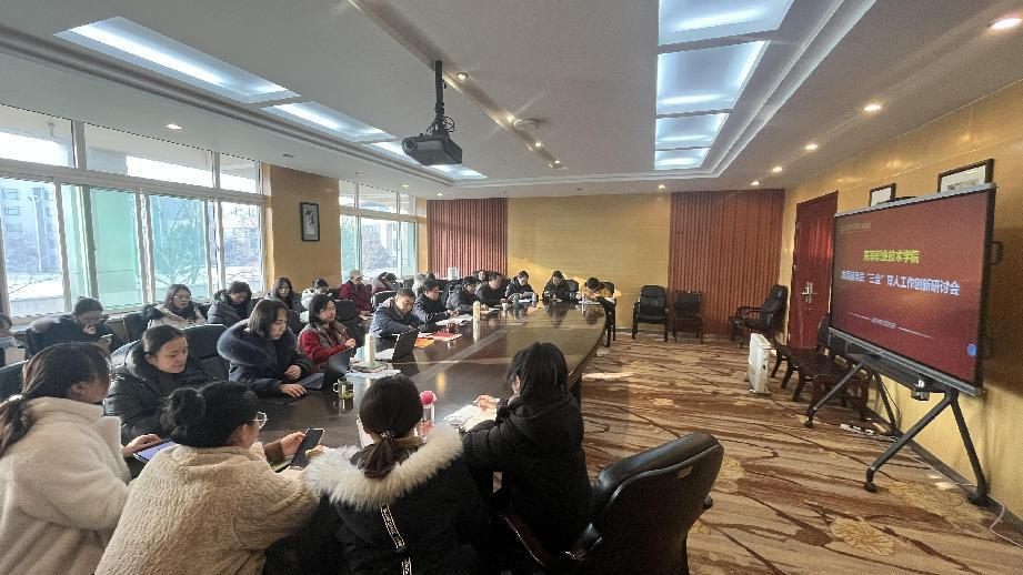 为进一步落实高校立德树人根本任务,提高辅导员育人工作成效,创新工作模式和方法,高质量打造具有高职特色的“学在明德”学风建设品牌。近日,高等职业技术学院在明理楼216会议室召开首届辅导员“三全”育人工作创新研讨会。特邀嘉宾党委学工部李传斌老师,高等职业技术学院领导班子成员全体辅导员参加交流研讨,会议由王飞主持。
