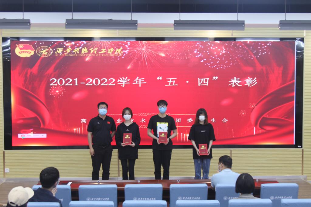 为进一步动员和鼓励我院广大团员青年,传承和弘扬“五·四精神”,2022年4月25日,高等职业技术学院(以下简称高职学院)在6号楼(建德楼)201召开“2021-2022学年‘五·四’表彰暨2021-2022学年团学活动颁奖典礼”。
