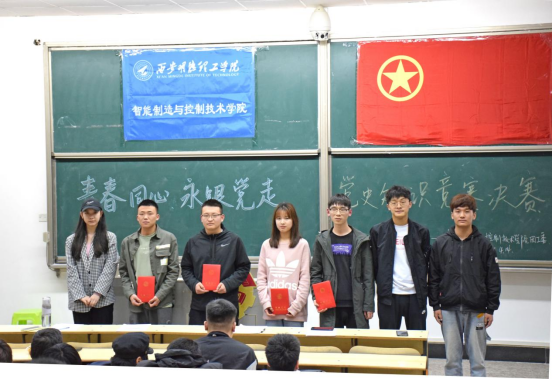 决赛阶段分为选择题、判断题、抢答题、风险选答题四个环节,竞赛内容涵盖中国共产党成立100年来重大事件、优秀人物、革命战争时期重要战役、新中国成立以来伟大成就等多项内容,以多元、丰富、立体的形式呈现出党百年发展的伟大历程,决赛环节不仅考验选手的党史知识储备量,更是考验选手现场发挥以及语言表达能力。经过激烈角逐,智能制造与控制技术学院马鑫、邰晨曦、孙一辰、徐瑞鹏团队获得一等奖,李志阳、杨哲、刘柯、李书豪团队获得二等奖。
