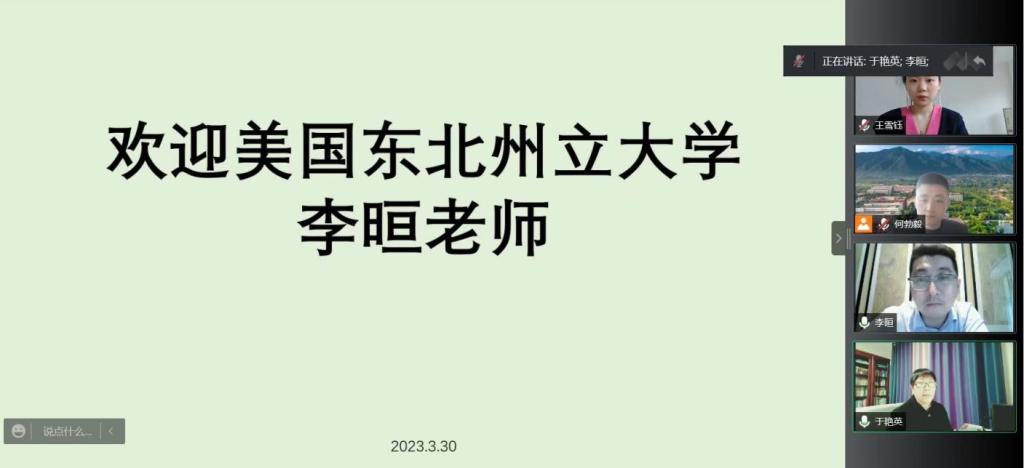 3月30日下午,开元与美国东北州立大学举行线上合作洽谈会。美方亚洲区主任李晅以及我方国际教育学院院长助理何勃毅、外事办公室王雪钰等相关负责人参加会议。