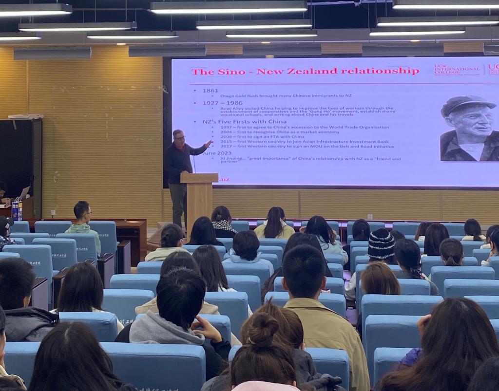 在建德楼202报告厅,Ian MacDonald博士为开元师生做了 “Education as a Driver of Productivity and Economic Growth”的主题讲座。学生从专业学习、创新能力、文化差异等方面积极提问,现场气氛热烈。此次讲座由国际教育学院、语言文化传播学院、经济与管理学院联合主办。