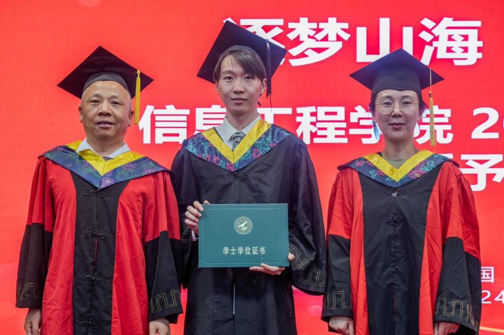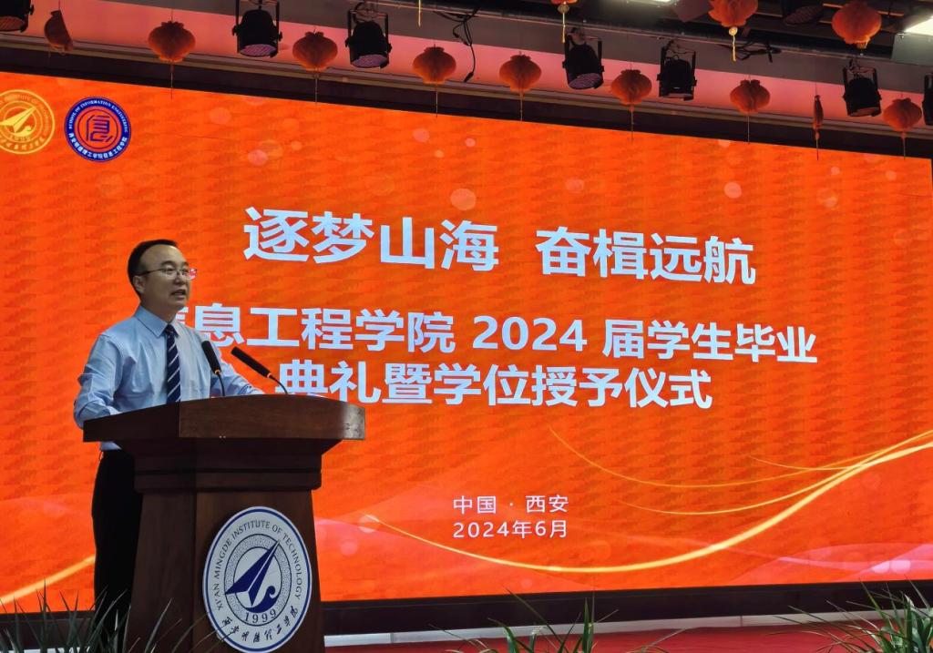 时至六月,序自三夏,时光荏苒,又到离别时节;记忆犹新,相遇犹在眼前。6月26日上午,信息工程学院在建德楼203举行2024届学生毕业典礼暨学位授予仪式。出席典礼的有校长王志刚,学校学位评定委员会委员、学院执行院长翟书颖,学校学位评定委员会委员陈世亮,学院党委书记肖千春,学院副院长范晖、张伟岗,学院党委副书记高长江,学院办公室主任尹莹,各专业负责人、家长代表、全体2024届毕业生。典礼由学院党委书记肖千春主持。