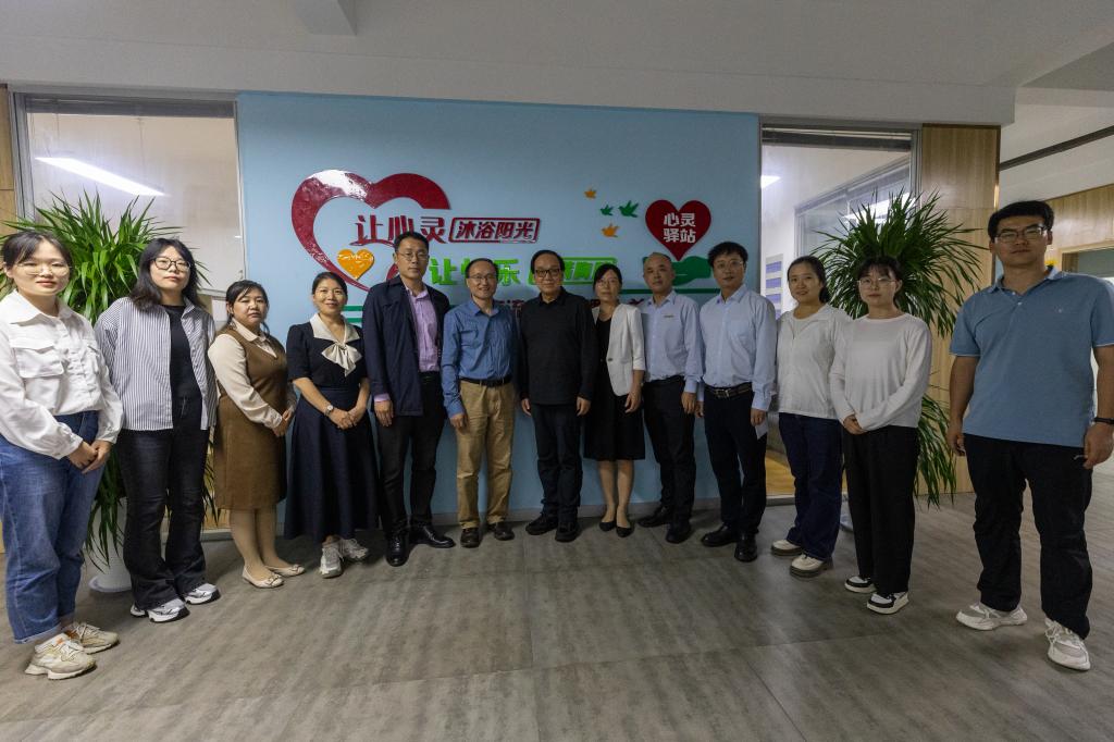 在实地考察环节,专家组分别对大学生心理健康教育中心功能室、二级学院心理辅导站以及一站式学生社区等场地进行了走访考察。