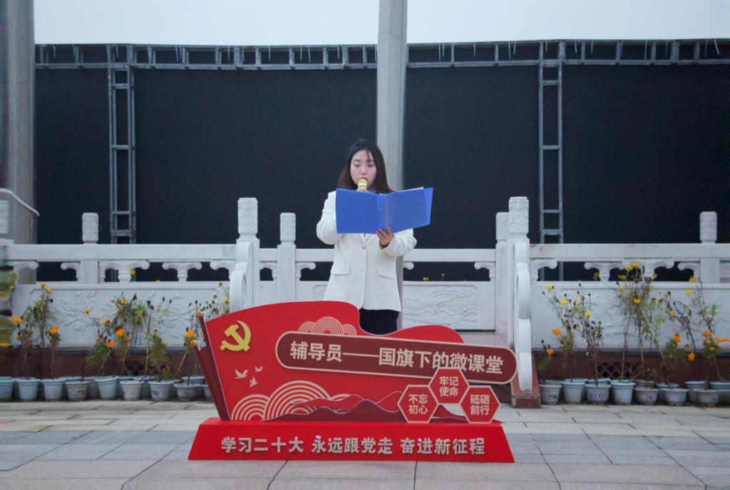 11月4日,“辅导员说成长”——辅导员讲微课“助学筑梦铸人,知恩立德立信”国旗下的微课堂爱国主义教育系列活动在学校中心广场进行,党委学生工作部老师、信息工程学院师生代表参加活动。