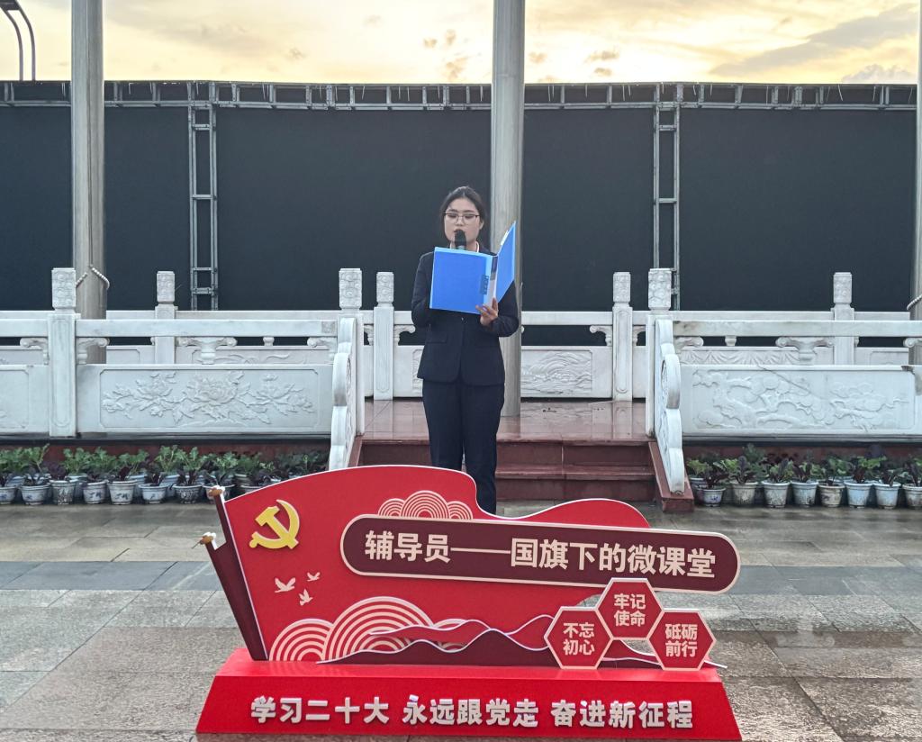 11月25日,“辅导员说成长”——辅导员讲微课“铸牢中华民族共同体意识,新时代大学生的使命与担当”国旗下的微课堂爱国主义教育系列活动在学校中心广场进行,党委学生工作部老师、语言文化传播学院师生代表参加活动。