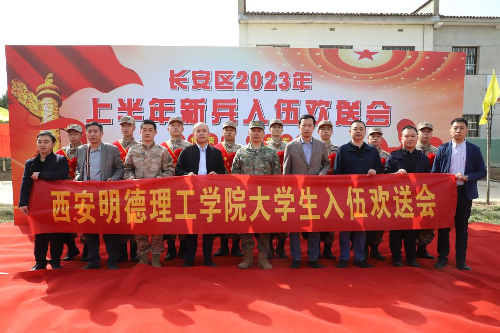阳春三月送新兵,一身戎装踏征程。3月15日上午,长安区2023年上半年学生入伍欢送会在长安区役前教育训练基地举行。学校党委副书记董昊、党委学生学工部、人民武装部领导和相关二级学院党委副书记代表学校参加了欢送会,为即将奔赴军营的开元8名入伍学生送去了慰问与关怀。