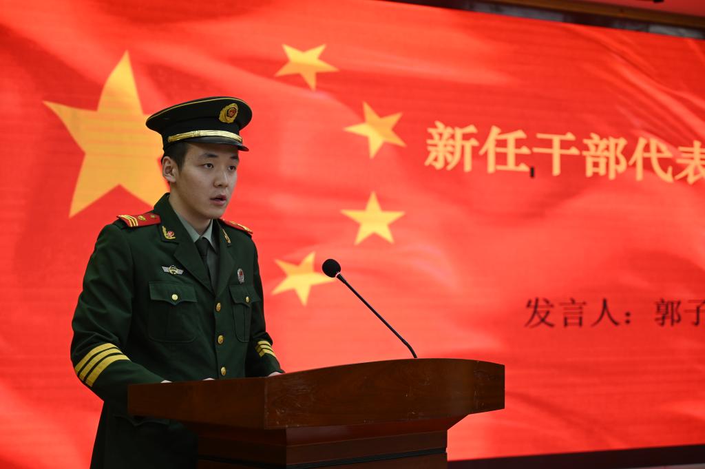 会上,离队队长孙一辰代表全体离队队员发表了离队感言,他回顾了上一届国护队工作活动情况和取得的成绩,为队员们感到非常的骄傲和自豪,并表示由衷的感谢和敬意,表达了对国护队的无比热爱和依依不舍之情。新任干部代表郭子俊作了表态发言。他表示,新一届国旗护卫队队员将继续发扬优良传统和作风,继续践行护卫国旗的使命,不断提高综合素质,传递爱国主义精神,谱写国旗护卫队新的篇章。