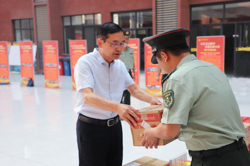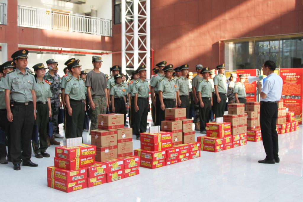 随后杨健君校长为全体军政干部送上防晒霜等慰问品,并叮嘱大家军训期间注意身体,及时补充水分防止中暑,劳逸结合安全施训。