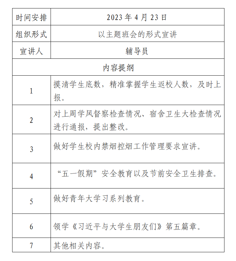 2022—2023学年春季学期第七次晚点名宣讲提纲