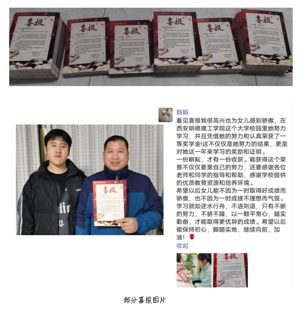 1月,搭建家校同向同行的育人桥梁,学校向荣获国家奖学金、明德之星、终南之星、单项奖的获奖学生家长发出喜报共计1457份,培养学生感恩之才。