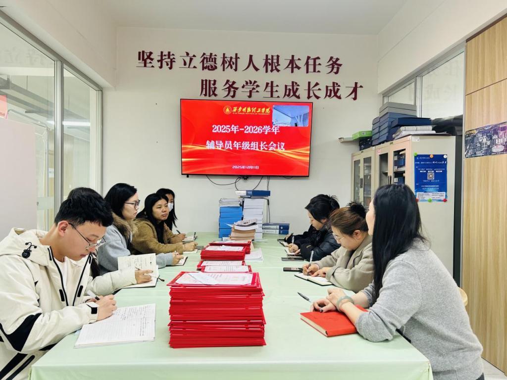 为进一步加强学生思想政治教育与日常管理工作,优化学生工作队伍结构,提升管理与服务效能,12月11日上午,学校组织召开2025-2026学年辅导员年级组长工作会议。会议总结回顾了上一阶段工作,并对近期的重点任务进行了部署。党委学生工作部相关人员、各学院辅导员年级组长参加会议。