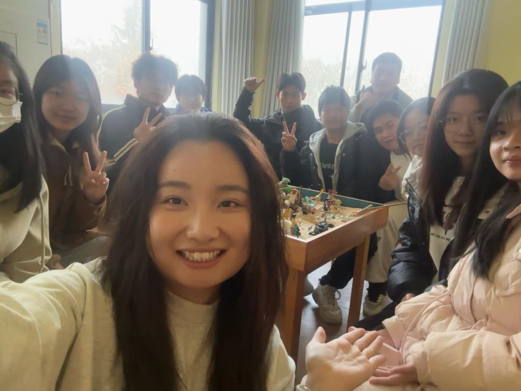在正式开始前,闫梦娜带领同学们进行了简单的放松训练,帮助大家进入更加专注和开放的状态。随后,同学们按照抽签顺序依次选择沙具,在沙盘中自由摆放。整个过程中,她仔细观察每位同学的选择和摆放方式,适时给予引导和鼓励。经过多轮摆放,一个充满象征意义的“心灵花园”逐渐成型。