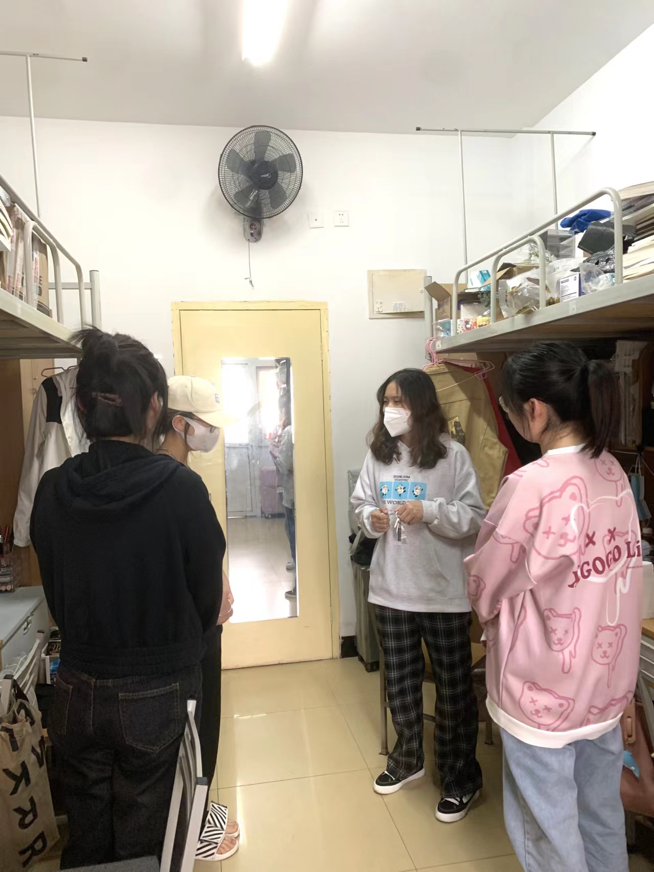 本次活动主要针对学生宿舍的安全隐患问题,重点检查宿舍安全卫生、违章电器和电器的规范使用。对于私拉电线、网线,乱插电源等现象进行严格检查,并告知留校同学“五一”期间不要留宿校外人员,不饲养宠物,严禁在宿舍楼内使用大功率用电器。个别宿舍卫生状况较差或用电存在安全隐患的情况。经现场教育和讲解后,同学们都立即动手整改,并允诺会进一步加强安全和卫生意识,自觉遵守学校规章制度,也会继续做好新冠疫情和常见春季传染病防控工作,强化自我管理、自我教育、自我服务的能力。