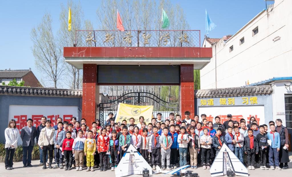 首先,在永新希望小学举办了“捐书筑梦 共沐书香”图书捐赠活动。校团委联合学校图书馆为希望小学捐赠了《读者》《演讲与口才》等8套书籍100余本,让书香传递来自Ky开元集团的温暖和关爱。书鹭文学社的2位同学为小学生分享了书目《狼王梦》《小王子》,倡导孩子们让读书成为习惯,鼓励小学生们追光而行,为梦想拼搏。学校航模队的4名同学为小学生讲述了航空航天知识、飞行原理、飞行器设计等基础知识,带领孩子们一起制作了纸飞机,在孩子们幼小的心灵种下了航空梦的种子。最后,学校航模队的同学们进行了航模飞行表演,分别展示了:三角翼飞行、单翼拉烟表演、四轴穿越机空中飞行,激发了孩子们对航空探索的求知欲望和崇尚科学的热情。