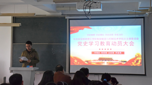 为深入学习贯彻习近平总书记在党史学习教育动员大会上的重要讲话精神,扎实开展党史学习教育。4月15日下午3点,智能制造与控制技术学院党总支在培徳楼201教室召开党史学习教育动员大会。学院教工党支部、学生党支部全体党员和部分团工委学生会成员参加会议。大会由教工党支部书记王泽同志主持。