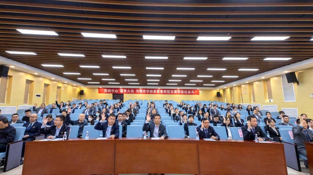 高超同志代表机关党委向大会作题为《围绕中心服务大局为推进学校高质量转型发展而团结奋斗》的工作报告。报告指出,机关党委成立以来,在学校党委的正确领导下,各党支部坚持围绕中心、服务大局,在推进学校高质量转型发展中发挥了战斗堡垒作用,广大党员在落实学校党委提出的各项工作任务中发挥了模范带头作用,在各方面均取得了可喜的成绩。报告客观分析了机关党委面临的形势和存在的问题。报告强调,机关党委将以贯彻落实党的二十大精神为首要政治任务,以提升组织力为目标,突出政治建设和思想建设,加强制度建设和作风建设,落实全面从严治党要求,在学校“十四五”教育事业发展规划和本科教学工作合格评估中,推进机关党建工作科学化,确保党支部战斗堡垒作用和党员先锋模范作用全面过硬。