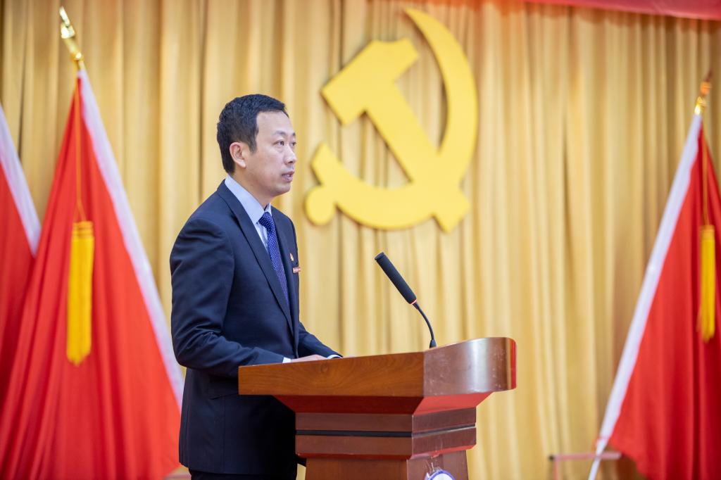 大会在雄壮的国歌声中开幕。学校党委副书记、纪委书记董昊同志代表学校党委对大会的顺利召开表示热烈的祝贺!他在致辞中指出,机关党委召开第一次党员大会,是对机关党委成立以来工作的回顾和总结,也是明确新一届党委的工作目标和主要任务。希望全体机关教职工以这次党员大会为新起点,形成共识、凝聚合力,推动学校高质量转型发展;希望机关各单位认真贯彻落实大会提出的各项任务,以时不我待、奋发有为的精神,统一思想、统一行动、抢抓机遇、破解难题,加快推进机关各项事业健康快速发展;希望机关新一届党委班子不辜负学校党委和机关全体党员同志们的信任,积极作为,善作善成、敢于担当、不断创新、奋发有为,为学校又好又快发展贡献力量。