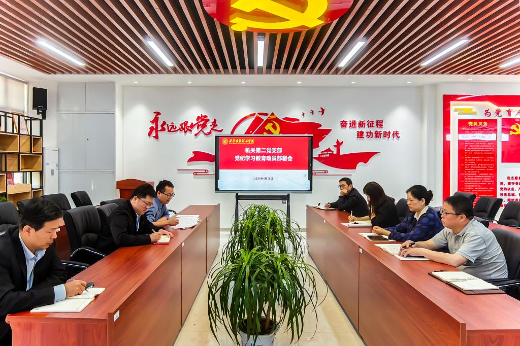 4月18日上午,机关第二党支部在学校党群服务中心召开党纪学习教育动员部署会,认真学习习近平总书记关于党纪学习教育的重要讲话和重要指示精神,传达学习中省有关要求和学校党纪学习教育动员、群众身边不正之风和腐败问题集中整治工作启动部署会议精神,结合学校《关于开展党纪学习教育的实施方案》,对支部开展党纪学习教育进行安排部署。支部全体党员参加会议,会议由支部书记张亚平同志主持。