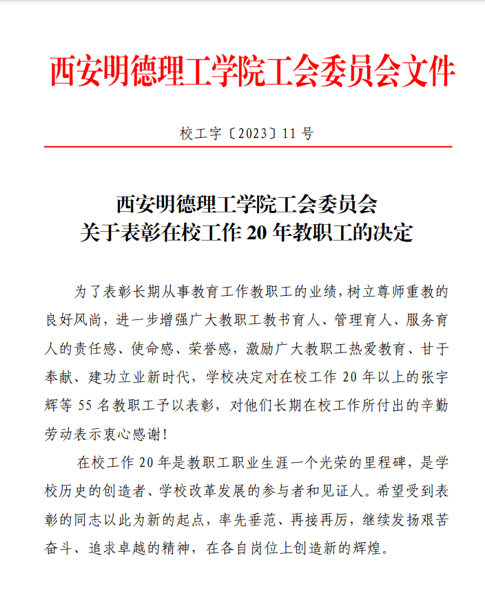 Ky开元集团工会委员会关于表彰在校工作 20 年教职工的决定