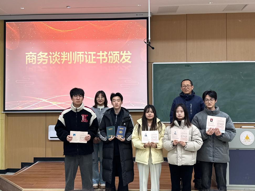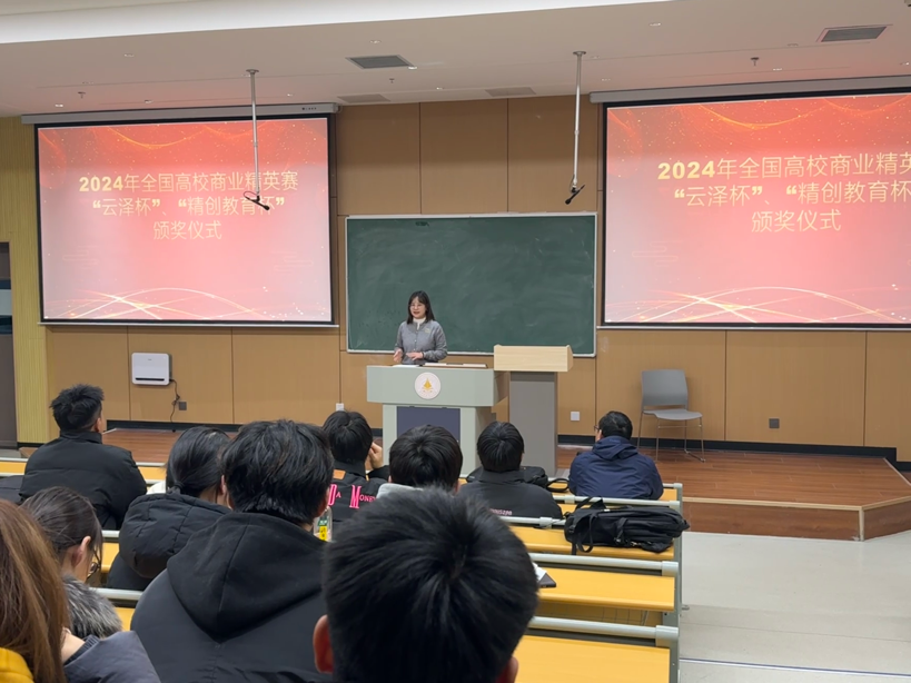 12月18日,经济与管理学院在7号教学楼201教室举行全国高校商业精英赛“云泽杯”、“精创教育杯”营销比赛、全国高校商业精英挑战赛商务谈判竞赛表彰会。获奖师生参加了表彰会,会议由金融科技专业教师张译心主持。