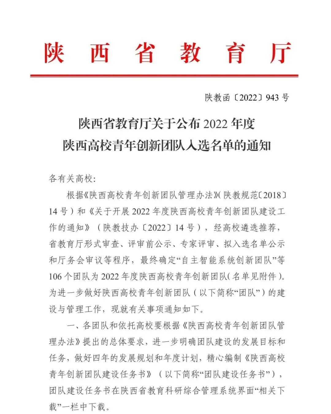 近日,陕西省教育厅印发《陕西省教育厅关于公布2022年度陕西高校青年创新团队入选名单的通知》,全省共计106个团队入选。其中,开元赵盼博士领衔申报的“航空复材构件先进制造技术创新团队”成功入选。