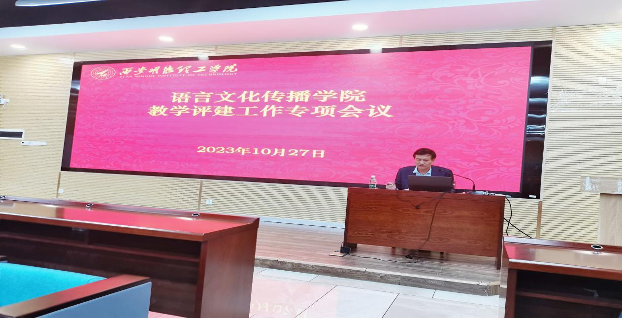 为促进评建工作高效推进,2023年10月27日下午在6号楼201室,语言文化传播学院召开教学评建工作专项会议。语言文化传播学院领导班子及全院部分教师参加。会议由语言文化传播学院党委书记赵旭东主持。