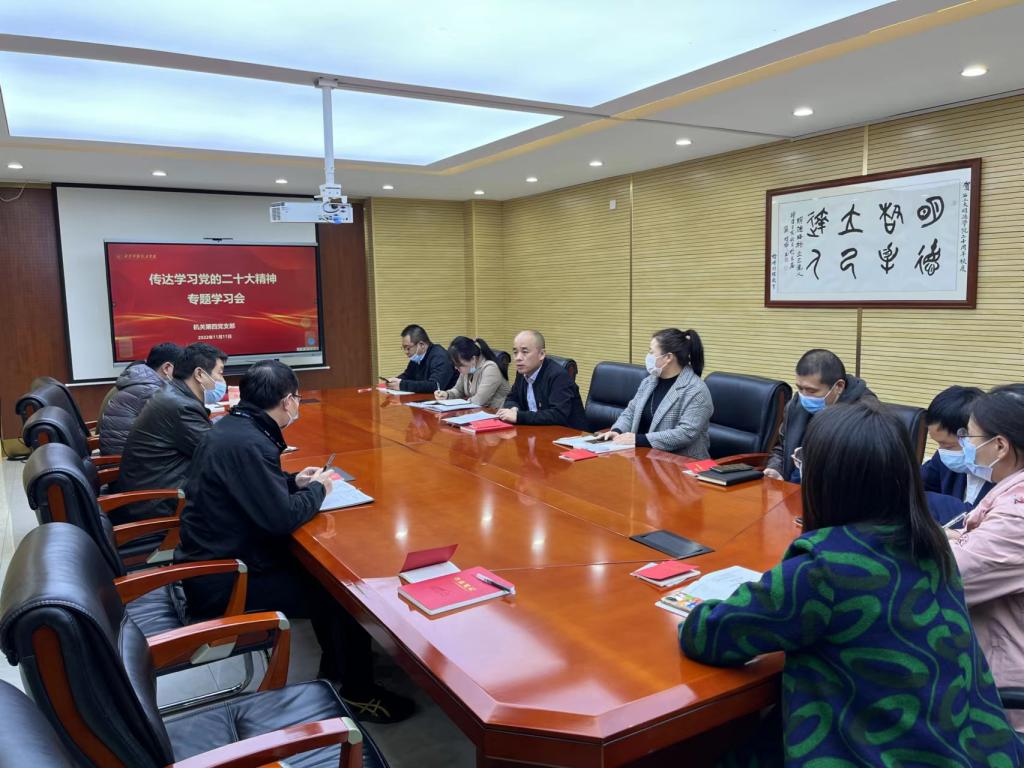 为进一步学习好、宣传好、贯彻落实好党的二十大精神,11月11日上午,学校机关第四党支部在明志楼207会议室召开学习党的二十大精神专题学习会,会议由支部书记童杨梓主持。