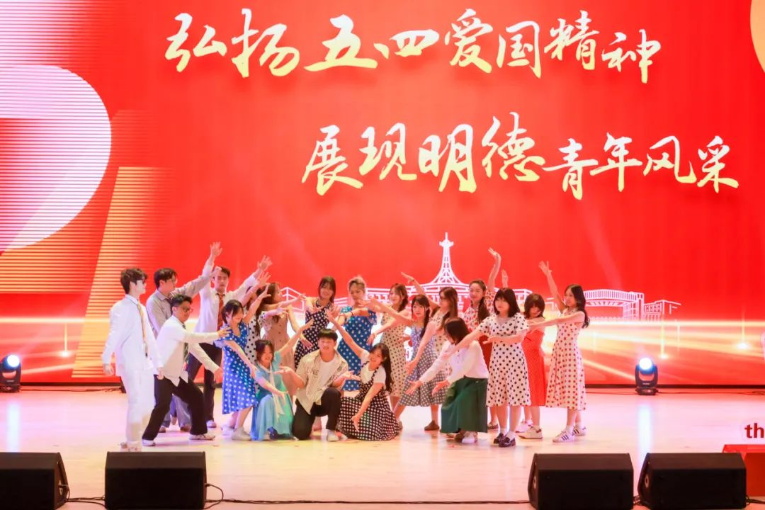 大学生艺术团带来的歌舞剧《乐燃五四・青春之城》则生动演绎了青年的活力与担当,赢得现场阵阵掌声,充分展现了明德青年朝气蓬勃的精神风貌。