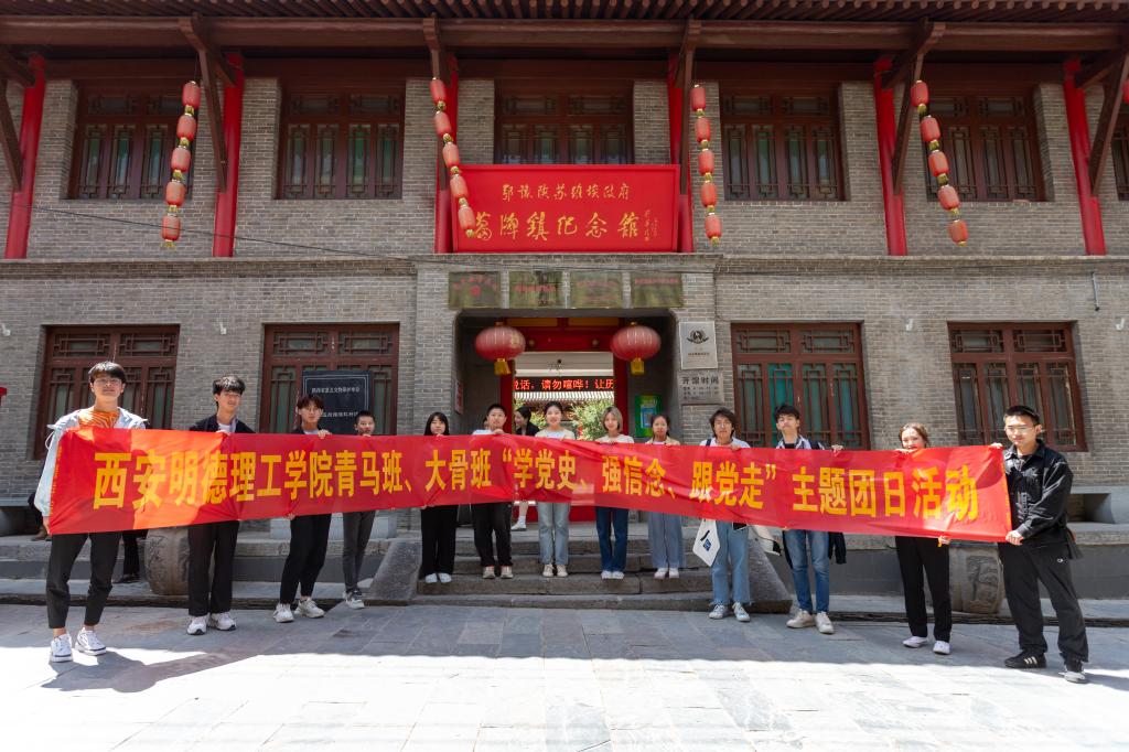 近日,学校团委组织“青马班”、“大骨班”学员赴蓝田葛牌镇红色基地开展了“学党史、强信念、跟党走”为主题的团日活动,瞻仰革命旧址、重温革命历史、接受革命传统教育。