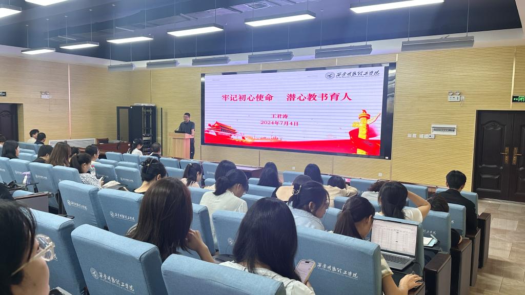 学院党委书记王君涛作了题为“牢记初心使命 潜心教书育人”的主题报告。他从准确把握师德师风的科学内涵、深刻理解师德师风的重要意义、师德师风建设中出现的问题以及身体力行践行师德师风标准四个方面,对学院教师师德师风建设提出具体要求,并强调作为高校教师应做到坚定理想信念、陶冶道德情操、涵养扎实学识、勤修仁爱之心,努力成长为“经师”“人师”相统一的大先生。希望全体教师在在认真完成试卷评阅的基础上,按照课程组进行集体备课、磨课,将教学工作做到精益求精。