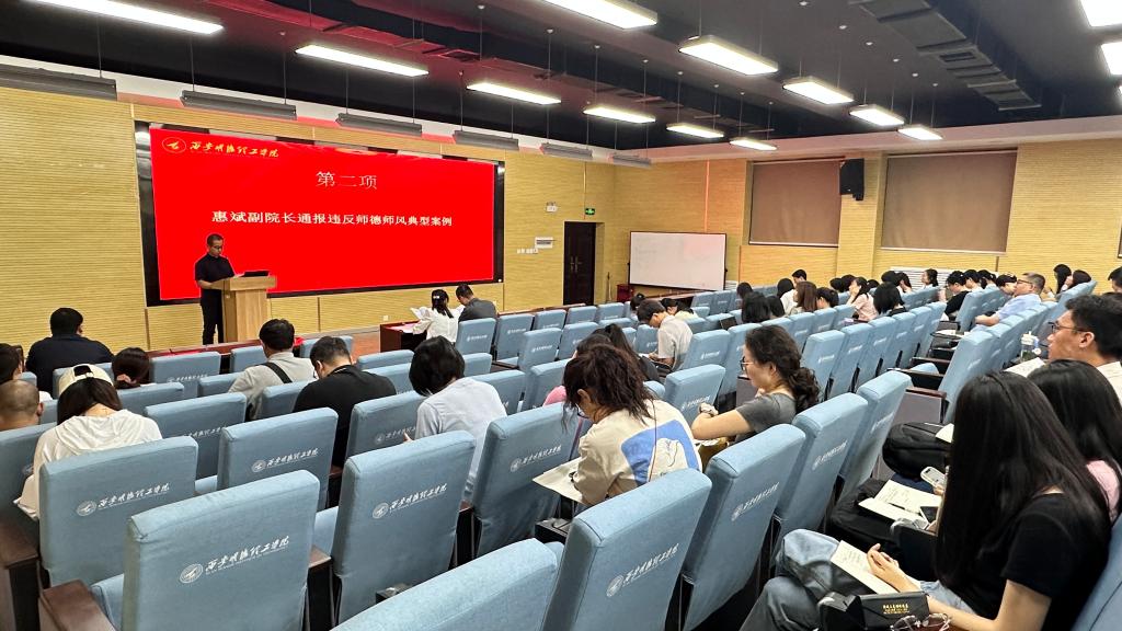 为学习贯彻落实党的二十大精神,深入学习贯彻习近平新时代中国特色社会主义思想,切实增强教师遵守新时代教师职业行为十项准则的思想自觉和行动自觉,持续推动学习教育家精神,做党和人民满意的“四有”好老师。7月4日,马克思主义学院和通识教育学院在建德楼202报告厅召开2024年师德师风警示教育大会。学院领导班子和全体教师参加会议。会议由学院党委委员、办公室主任王晓强主持。