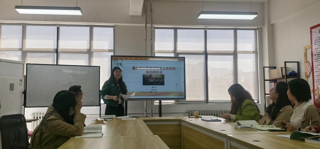 随后,柳锐敏、刘恒涛老师选取第五章重难点展开教学示范。柳锐敏老师以“遵义会议实现伟大转折”为主题,解答了“为什么说遵义会议是生死攸关的转折点”这一重点问题。柳老师的教态自然优美,逻辑清晰,为与会教师作出了极好的示例。刘恒涛老师的教学主题是“长征——血与火的淬炼”。聚焦于著名历史事件,表现了革命的艰难不易。