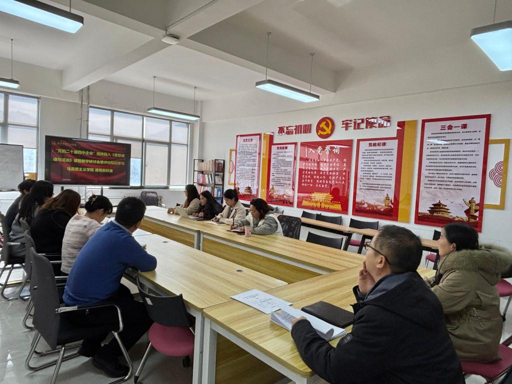 为深入学习贯彻党的二十届四中全会精神,推动全会精神与高校《思想道德与法治》课程实现深度有机融合,同时积极响应并扎实推进本科教学合格评估各项工作,11月19日中午,马克思主义学院德育教研室在明志楼南306会议室组织召开专题会议——“党的二十届四中全会精神融入《思想道德与法治》课程教学研讨会暨评估知识学习大会”。会议由德育教研室主任樊静主持,教研室全体教师参加了本次会议。