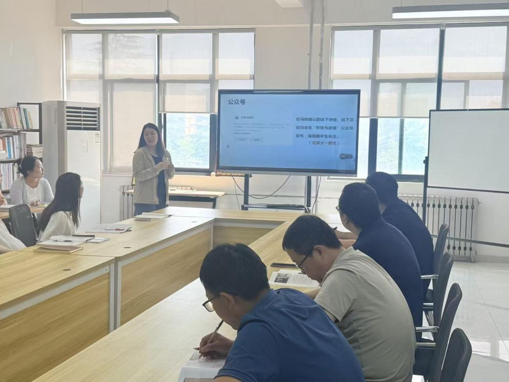 会议最后,惠斌副院长进行总结发言并对新学期的课程进行安排部署。他充分肯定了三位老师对课程的讲授,同时强调在新学期,教师们应课时把控上适配课程特性,精准分配时间;在平时成绩打分上多元维度,公开评分细则,让学生清晰了解 “高分标准”,引导其有针对性地提升,同时兼顾过程与能力;在课堂管理意识上,针对不同课堂场景采用差异化管理策略,让课堂管理兼具 “秩序性” 与 “人文性”;在课程内容互动上应创新形式,深化认知联结。此次集体备课会的顺利召开,为我院本学期《形势与政策》课程教学工作的有序开展奠定了坚实基础。相信在全体教师的共同努力下,该课程将在学生思想政治教育中发挥更大作用。